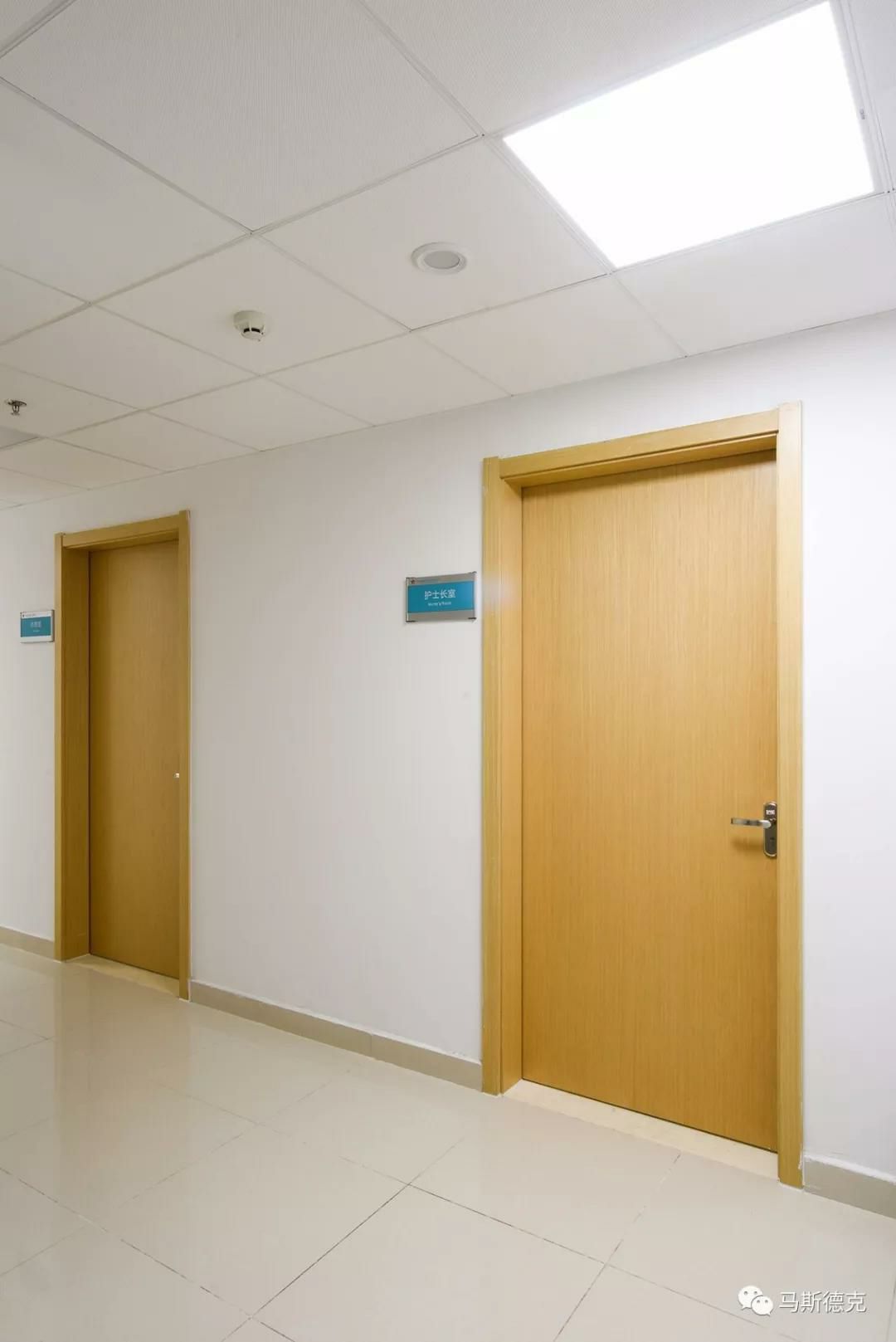 解放军105医院总院新建大楼项目中,广州薇晨软件解决方案有限公司为医院提供医疗环境整体解决方案,其中包含钢制病房门、 钢制木纹门、钢制设备间门、钢制卫生间门。结合解放军105医院整体干净、简洁的装修风格,为该项目定制了相应的解决方案,使整个空间看上去更通透明亮。 广州薇晨软件解决方案有限公司在病房与通道处搭配了浅色系的钢制子母病房门及钢制双开自由通道门,让整体空间在视觉上有扩 大的效果,并且浅色系温馨环境也可减少病人的心理负担,更容易使人精神放松。